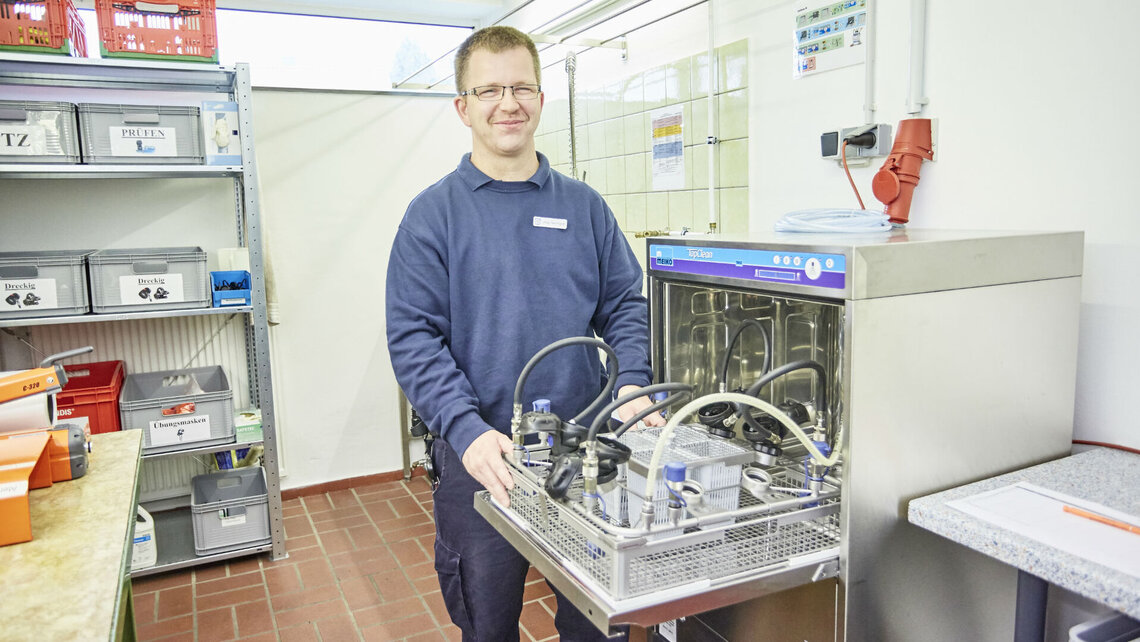 Neben Ökonomie und Schnelligkeit stehen bei einem anderen großen deutschen Industrieunternehmen vor allem Sicherheit und Komfort bei der Maskenaufbereitung im Mittelpunkt. Lesen Sie hier wie Aurubis seinen Mitarbeitern in der Atemschutzgerätewerkstatt mehr Arbeitssicherheit und ein ergonomischeres Arbeiten beim Aufbereiten der Masken ermöglicht.