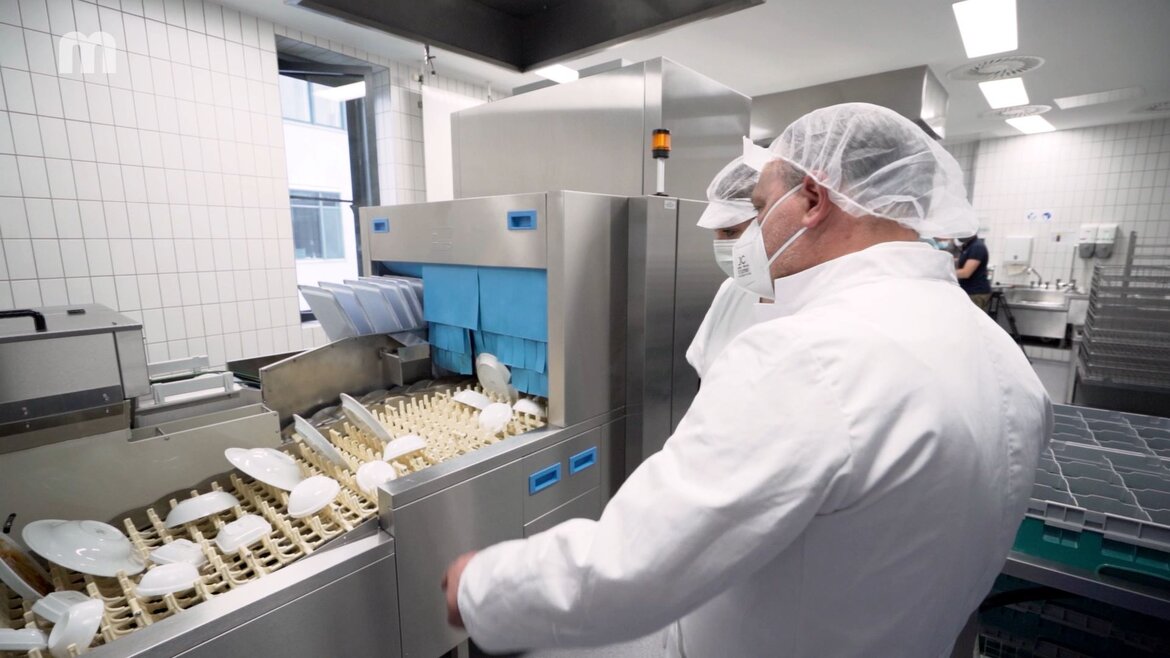 Händeringend wird nach Personal gesucht. Auch in der Spülküche des Klinikums Erlangen. Dazu kommen hier: enge Räume und Stoßzeiten mit reichlich Geschirr.