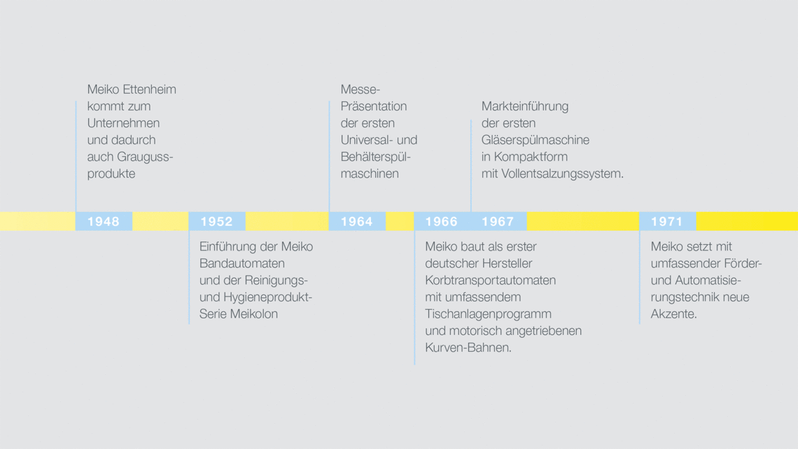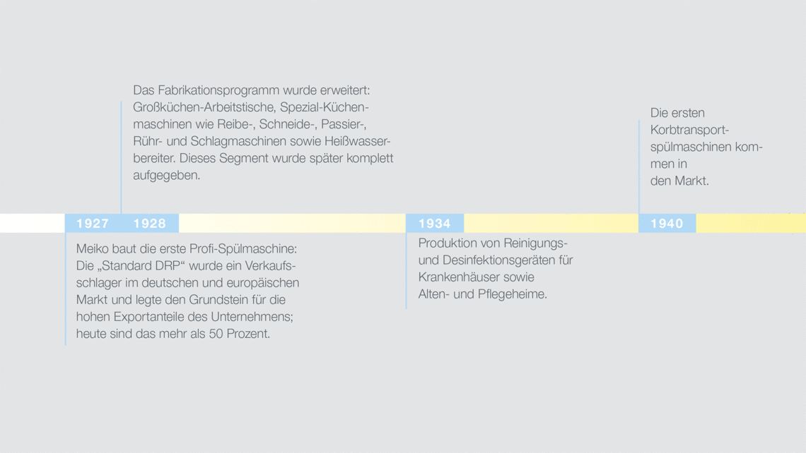 Von der Gründung an, seit 1927, prägt MEIKO die technologische Entwicklung moderner Profi-Spülmaschinen, Reinigungs-und Desinfektionsgeräten und der Technik zum Sammeln, Verwerten und Lagern von Nassmüll. Neben der Technik schreibt MEIKO auch mit seiner Entwicklung hin zum Global Player für Sauberkeit eine einzigartige Erfolgsstory. Lesen Sie hier!
