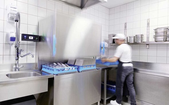 Nur so kann eine gewerbliche Spülmaschine kontinuierlich und ohne Qualitätsverlust spülen.