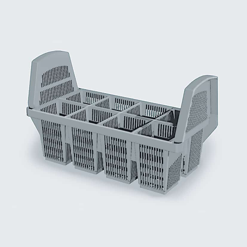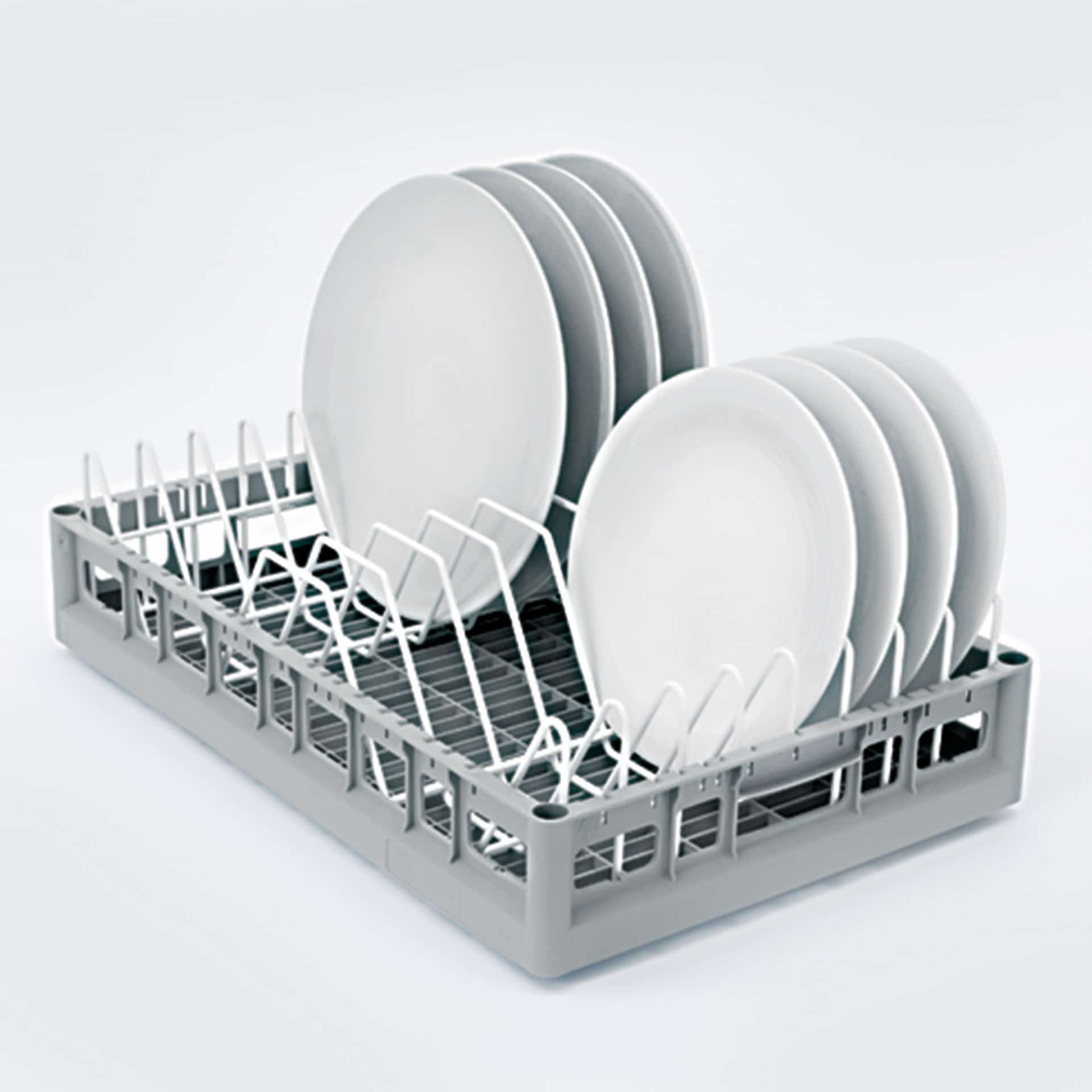 Die in bewährter Polypropylenqualität hergestellten Kunststoffkörbe besitzen eine unverwüstlich hohe Stabilität. Der Korb bietet eine schonende, elastische Aufnahme der Geschirrteile und gleichzeitig eine hervorragende Wasserdurchlässigkeit.