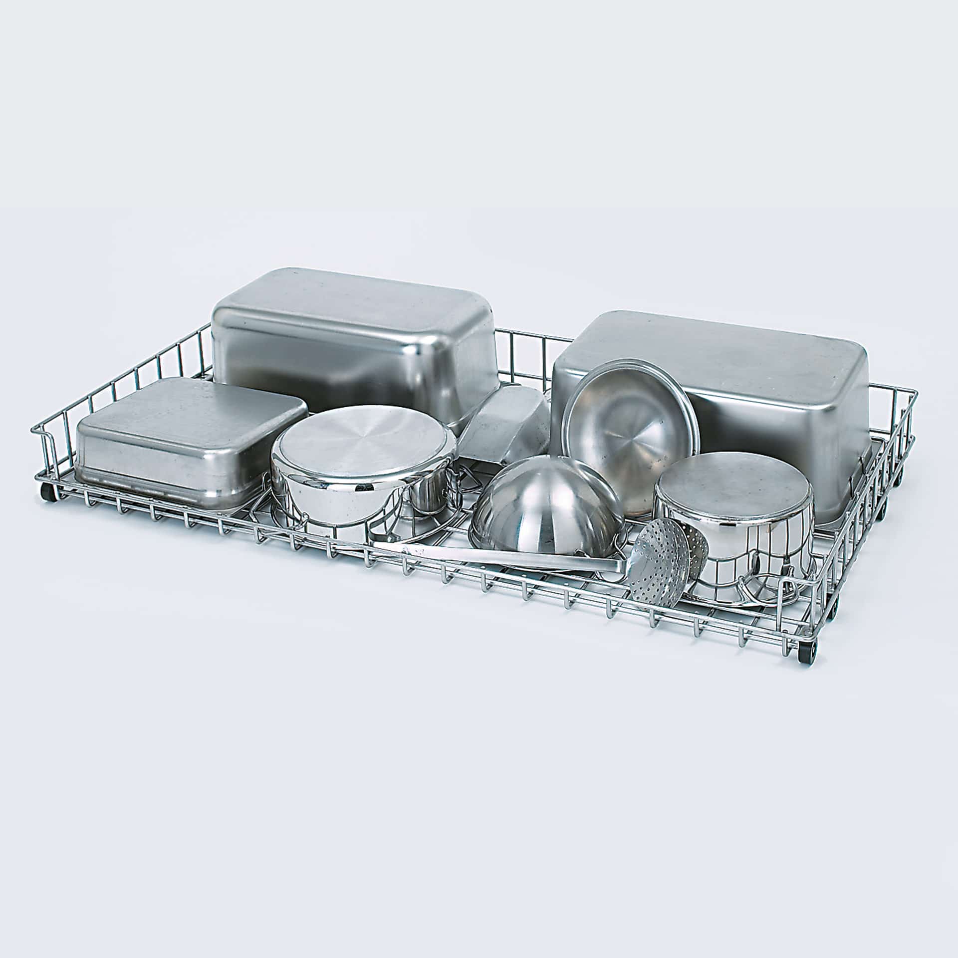 KÖRBE FÜR UTENSILIENSPÜLMASCHINEN AUS CRNI-STAHL MIT UND OHNE LAUFROLLEN