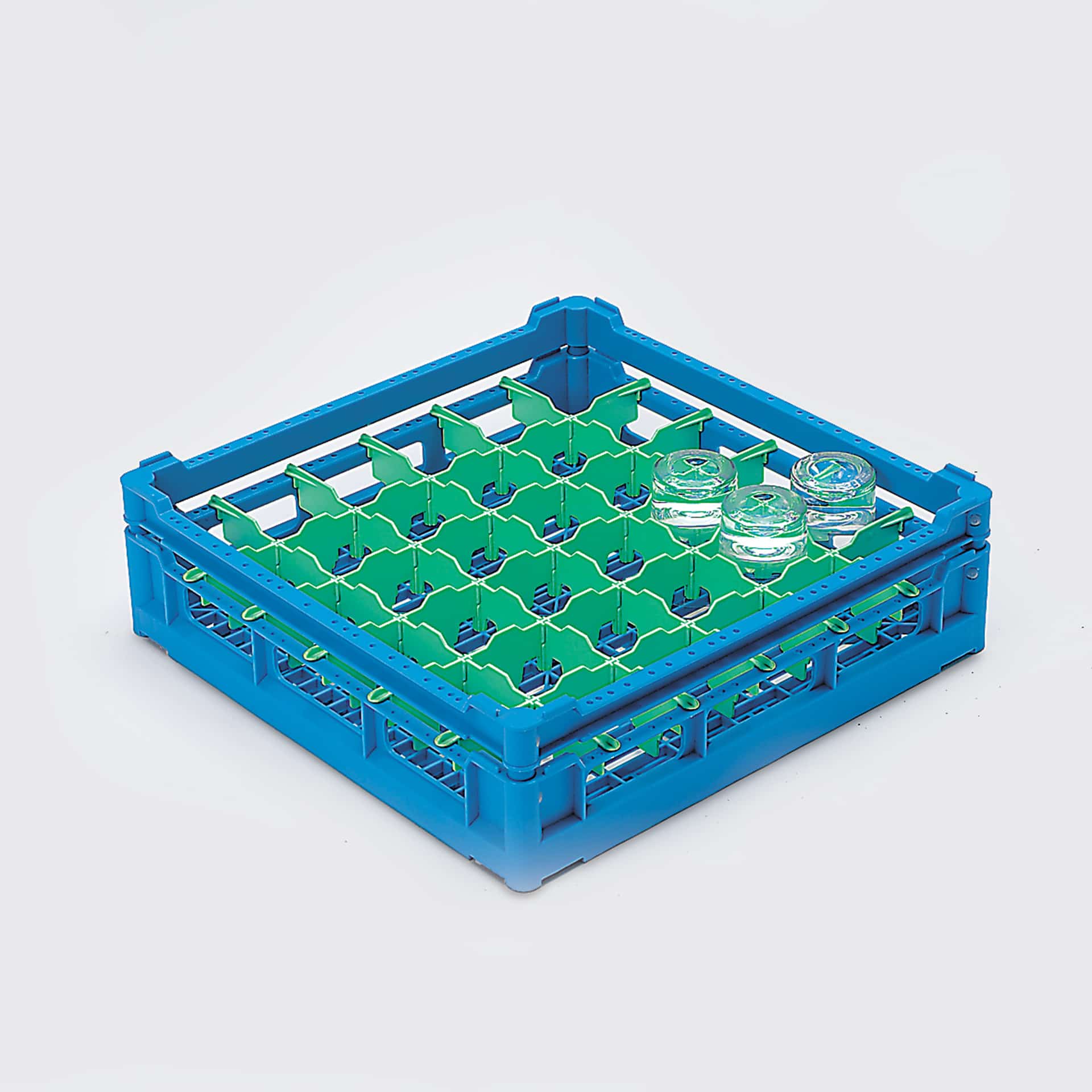 im Korbmaß 600 x 400 mm Facheinteilung für 15–40 Gläser sowie für unterschiedliche Glashöhen