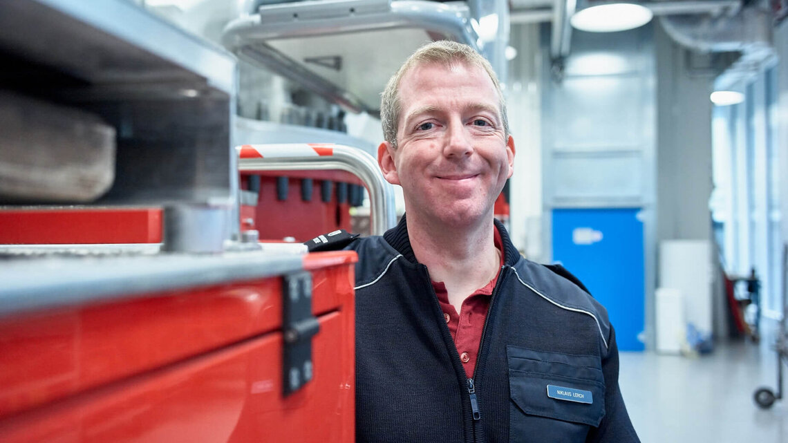 Niklaus Lerch, Dienstgruppenchef der Werkfeuerwehr, setzte sich für die Anschaffung der MEIKO Lösung ein. Sein Argument traf auf offene Ohren: 42 Minuten für die Aufbereitung von vier Masken und nochmals eine dreiviertel Stunde für den Trockenprozess im Gegensatz zu sechs Minuten im TopClean M und einer deutlich geringeren Trocknungszeit.