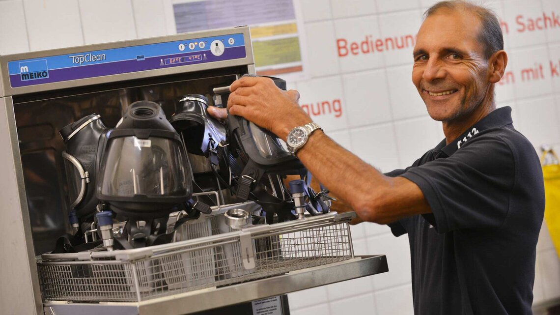 Und hier gibt es tatsächlich auch die Schnittmenge zur Medizin: Ohne Hygiene wird nämlich auch Atemschutztechnik eher zur Gefahr als zur Hilfe in gefährlichen Situationen. Atemschutzmasken müssen verlässlich funktionieren – und sie sollten keine mikrobiologischen Reste aufweisen vom Kameraden, der sie vorher benutzt hat. Dafür trägt der Atemschutzgerätewart die Verantwortung. Und er trägt auch die Verantwortung für eine ganze Menge mehr: Nämlich dass Atemschutzmaske und Lungenautomat auch 100-prozentig funktionieren.