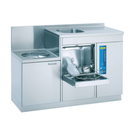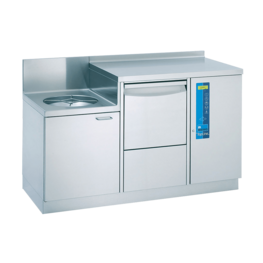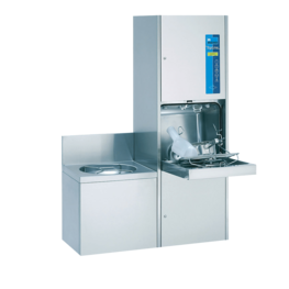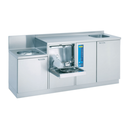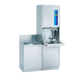 Der Untertisch-Steckbeckenspüler TopLine 40 lässt sich zusammen mit dem Handwaschbecken platzsparend und gleichzeitig Platz schaffend unterbringen. Bei diesem kompakten Kombinationsmodell befinden sich Arbeitsfläche und Handwaschbecken in ergonomisch sinnvoller Höhe und machen die Arbeit so besonders angenehm.