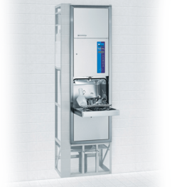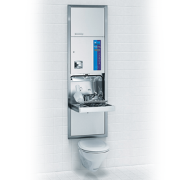 Dieser Steckbeckenspüler lässt sich wandbündig einbauen – das schafft ideale, platzsparende Voraussetzungen für die Ausstattung von Patientenzimmern. Vor allem in Intensiv- und Isolierstationen bietet er viele Vorteile: Kontaminierte Pflegegeschirre werden nicht über Flure getragen und bleiben eindeutig patientenbezogen.