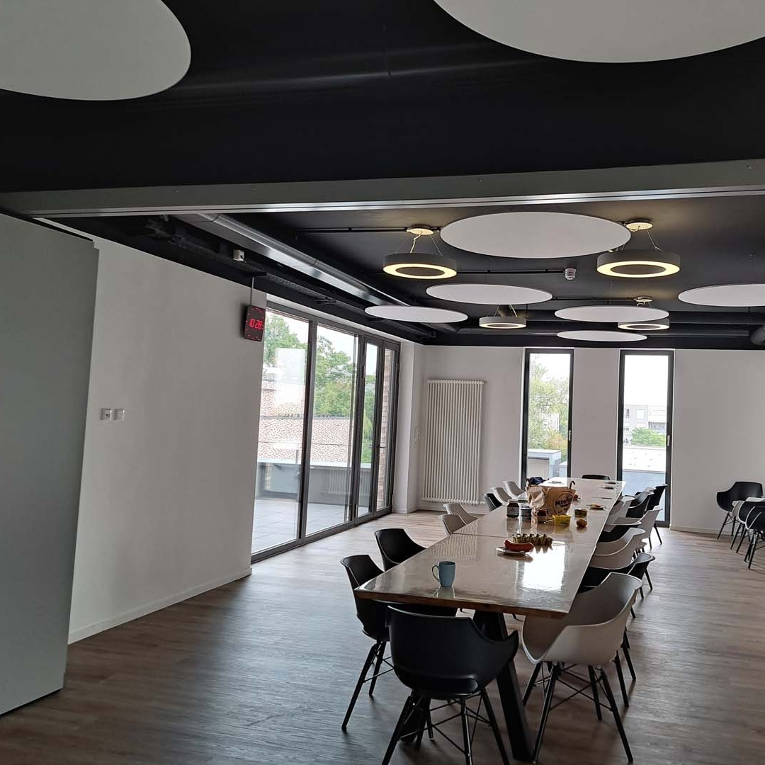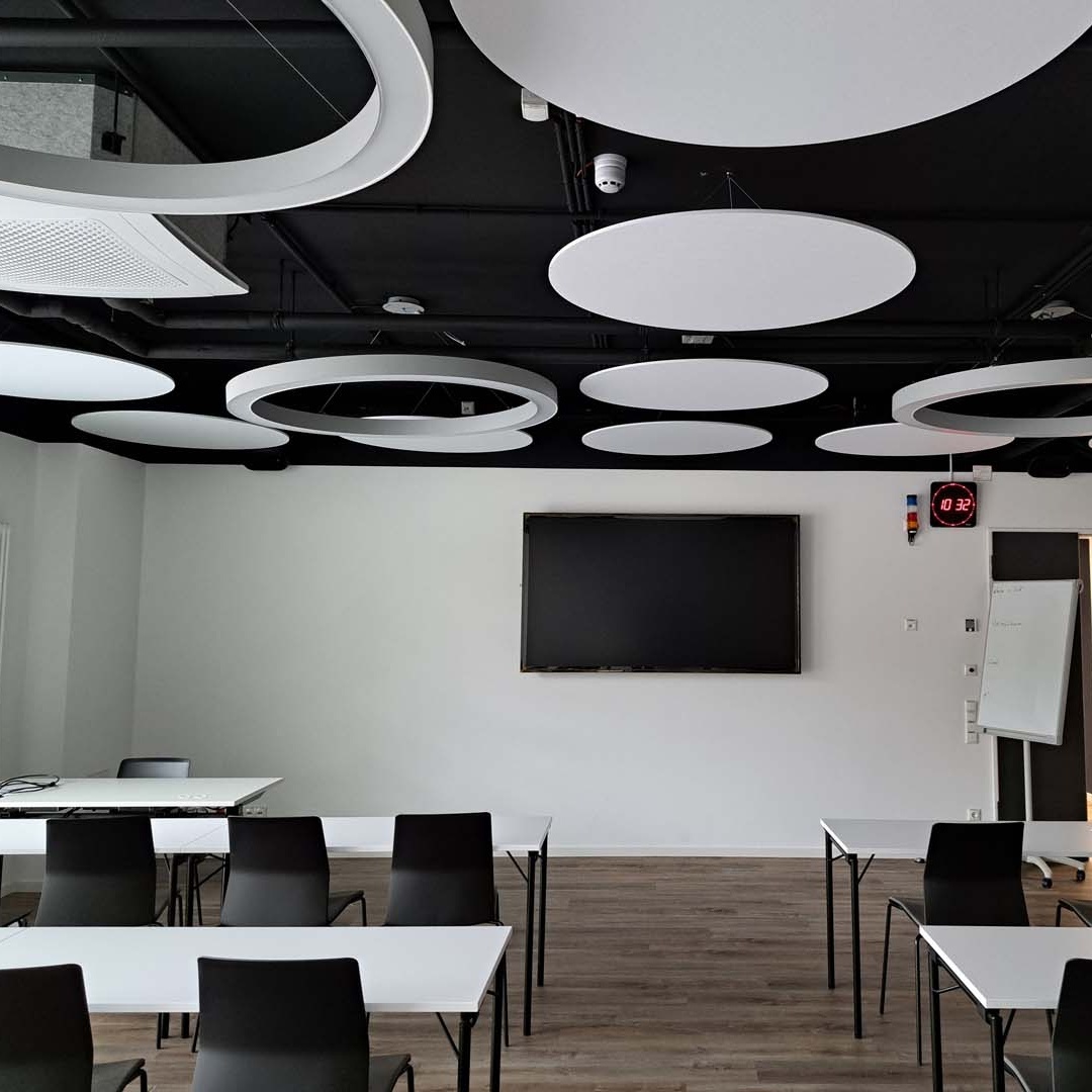 Der Bau bietet in der oberen Etage Platz für Gemeinschaft, Lernen und Rehabilitation. Hier sind eine voll ausgestattete Küche sowie moderne Schulungsräume, Büros, Ruhe- und Gemeinschaftsräume untergebracht. Von dort gelangt das Personal bei Alarm über Treppenhaus und Rutschstangen schnell zu den Einsatzfahrzeugen ins Erdgeschoss.