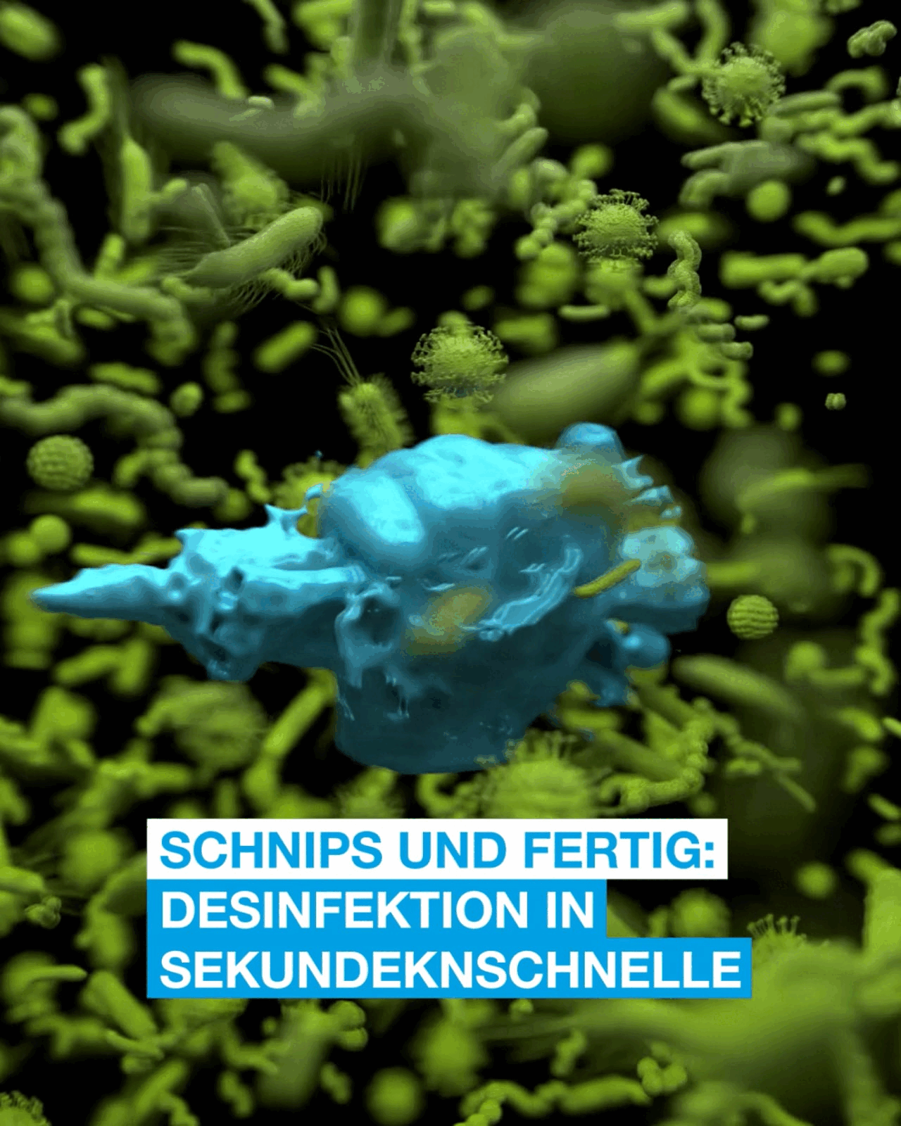 Stellen Sie sich vor: Ein Wirkstoff, der sich innerhalb eines Fingerschnipsens bildet, selbst widerstandsfähige Erreger wie Clostridioides-difficile-Sporen in Sekunden inaktiviert – und sich danach nahezu vollständig wieder abbaut. Mit Sporosan®* wird das Realität! Geprüft sporizid**. Biologisch abbaubar. Vielseitig einsetzbar.
