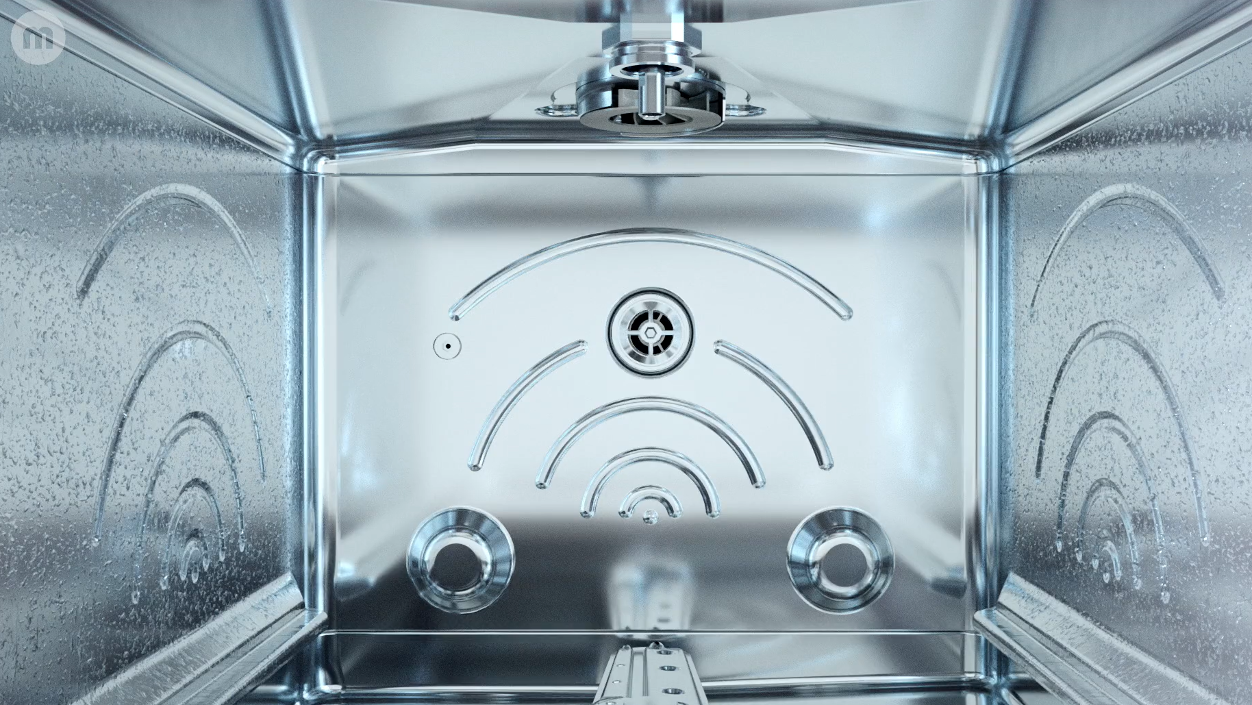 In der M-iClean U arbeitet ein kombinierter Wasch- und Klarspülarm aus Edelstahl, der beide Funktionen gekonnt vereint. Hochwertig und effizient! Die Vorteile liegen auf der Hand: