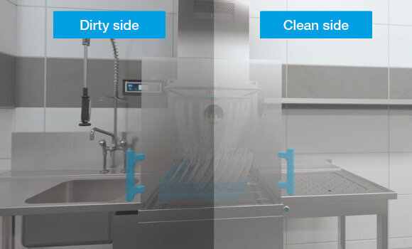 These features enable undercounter and hood type dishwashing machines to achieve wonderfully hygienic results: