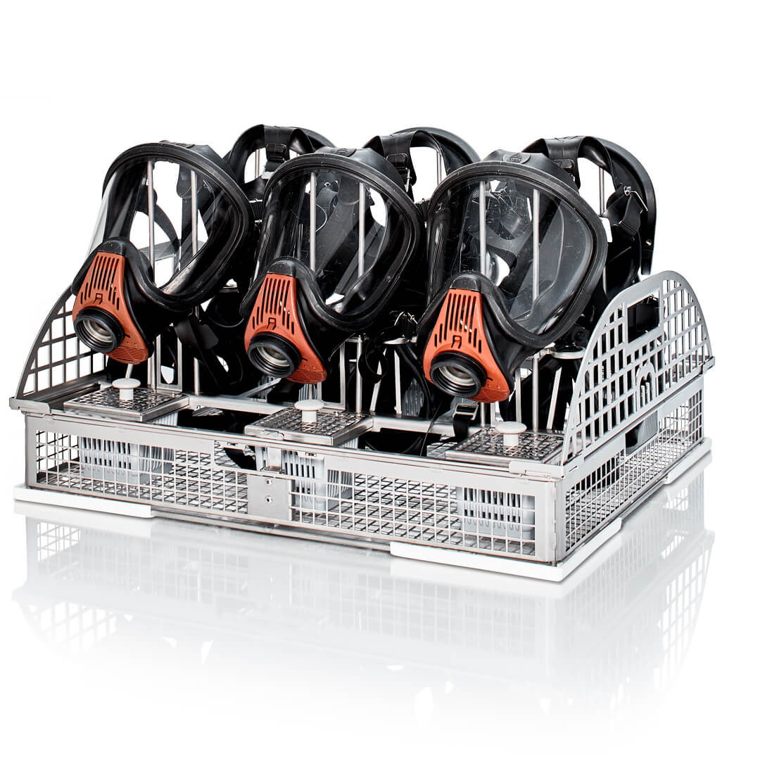 The patented compressed air connection in the wash chamber works alongside the regulator rack to prevent any moisture from entering the regulators. BA mask wearers can breathe easy on their next call-out.