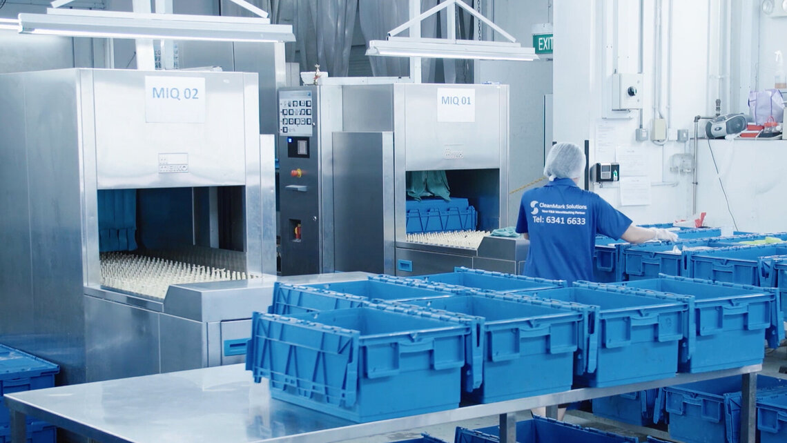 CleanMark customers pack their used dishes in blue boxes and deliver these to the dishwashing professionals. Angeline Ang is the Chief Operations Officer of the Singaporean company and relies upon MEIKO dishwashing machines: "We use the MiQ machine type, which is also considered to be the best in class by the caterers for large airlines." Approximately 100,000 pieces of tableware are washed with the M-iQ flight type dishwashing machines every day. Ms. Ang explains the latest purchase of an additional M-iQ flight type dishwashing machine: "We are currently increasing capacity in order that we can double our performance."