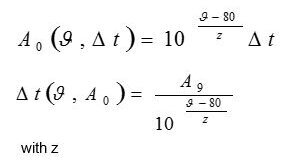 (∆t = selected time period in seconds, T = temperature of the load in °C (lower limit-value = 65 °C), z = 10 (°C)