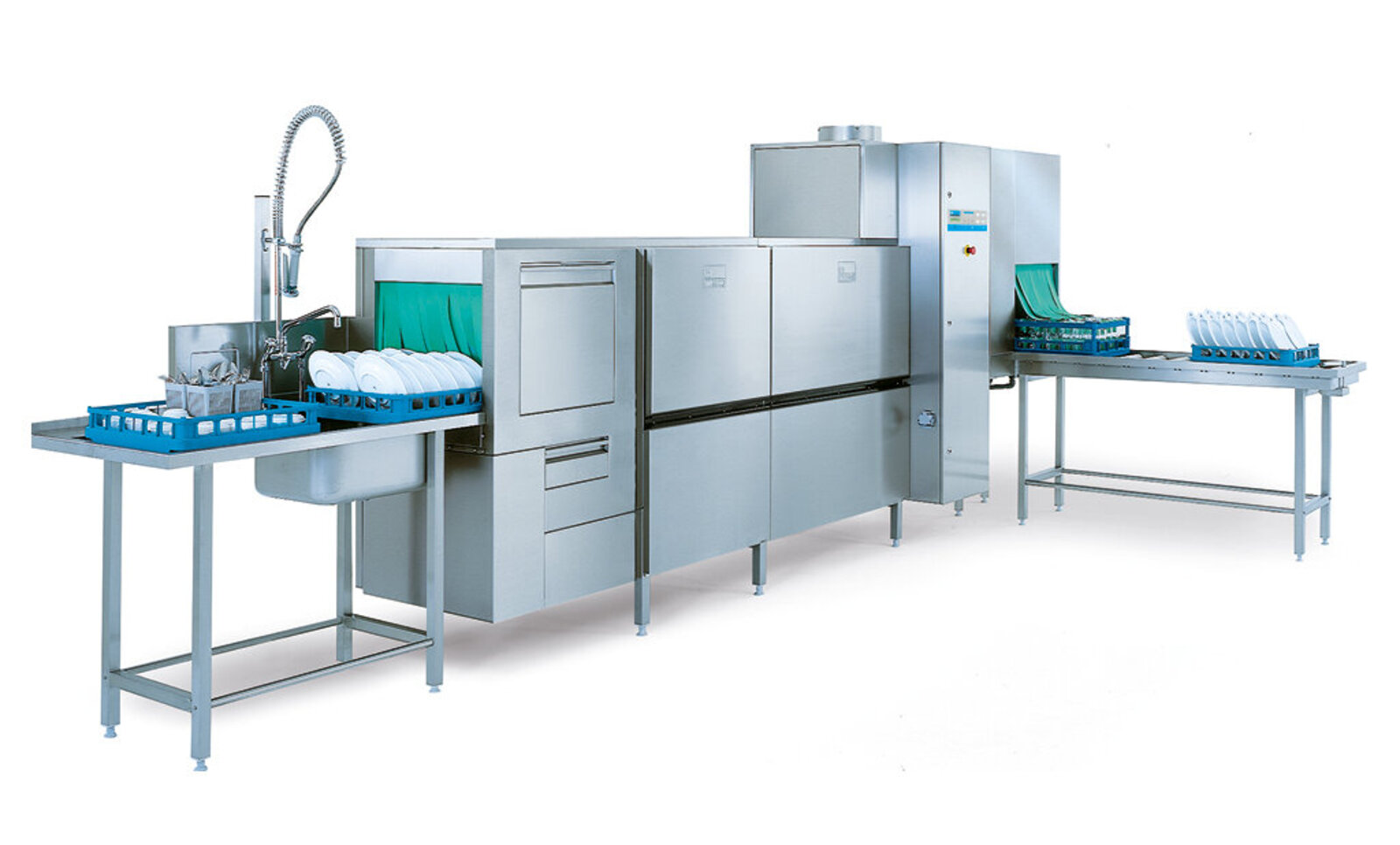Our line of K-Tronic Rack Conveyors will wow you. MEIKO's K-Tronic rack conveyors combine state-of-the-art features with reliable and cost-saving operation. Our advanced rack conveyor has extremely low water consumption. Using warm waste air to preheat the incoming water reduces your energy costs while cooling the exhaust air. Other standard features include optimally-positioned wash arms made out of stainless steel and come with attached end caps that can't be lost during cleaning. The K-Tronic rack conveyors incorporate a large separation between the wash and rinse areas that eliminates splashing of soiled water on sanitized ware.