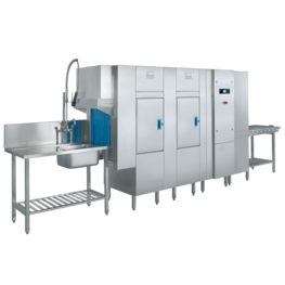 Double-wall insulation minimizes noise and heat loss while keeping the exterior of the equipment cool to the touch. Slotted, concave wash nozzles deliver superior cleaning for all your wares—from dishes, to pots and pans, cutlery and more. With water consumption of only 0.29 gallons (1.11 liters) per rack and a 20ʺ (508mm) tunnel height, the KA-44 delivers maximum washing performance in a minimal space.