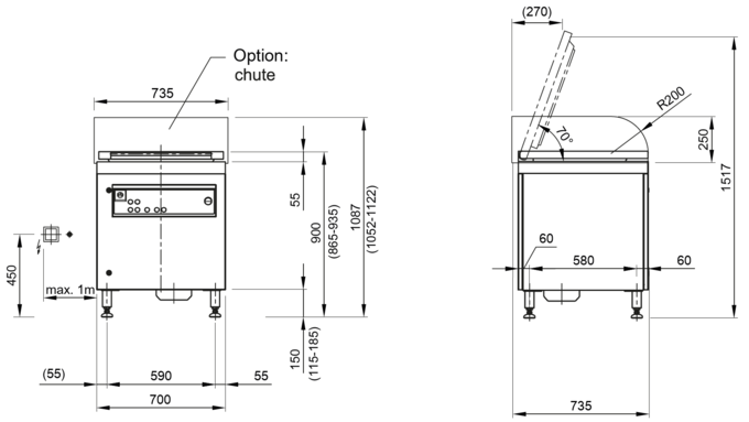 The BioMaster® 4 PLUS comes on the same chassis as the BioMaster®4 HIGHLINE: 150 mm ground clearance, can be plinth-mounted, easy to clean, standard-compliant water supply, attaches to tables and hygiene stations, yet this appliance is in a class of its own. The right machine for use in medium to large commercial kitchens. Kitchen waste and leftovers can be processed in just 50 seconds. From breakfast to dinner, norm-compliant processing is guaranteed. A symbiosis between power and design.