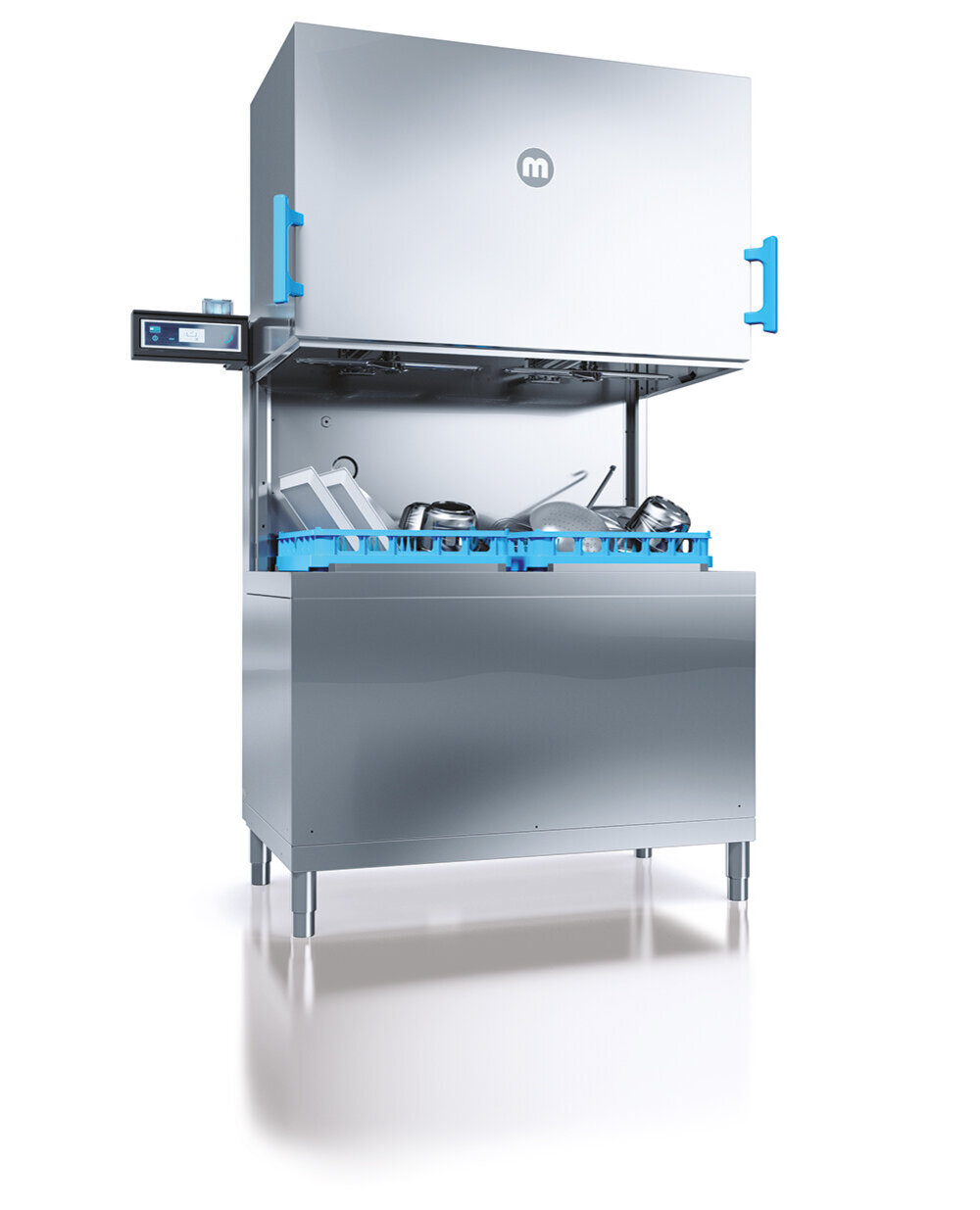 Whether coarse or fine, large or small: The M-iClean HXL hood type dishwashing machine with twice as much capacity makes everything hygienically and sparklingly bright in two 500 x 500 mm racks. The passing height is a generous 505 mm.