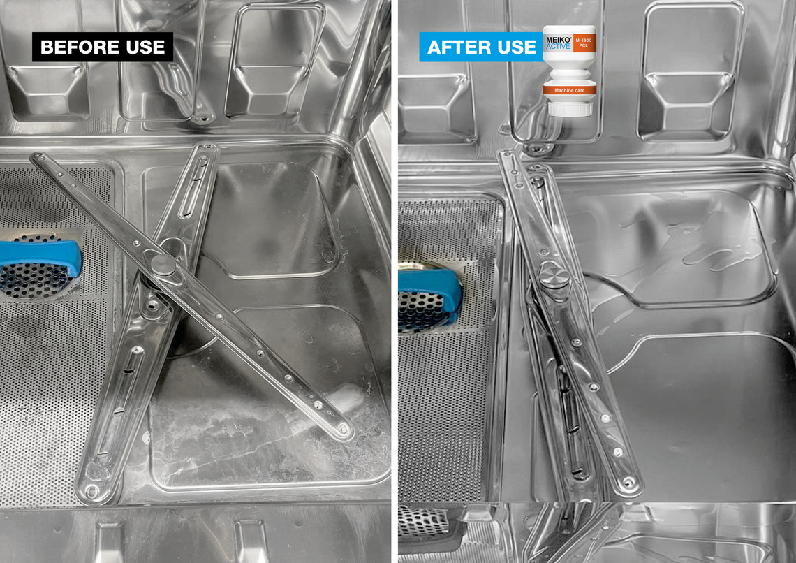 "Even if your machine has a self-clean function, we recommend the application of MEIKO ACTIVE M-5900 PCL dishwasher cleaner for periodic deep cleaning,” says Meiko UK MD Paul Anderson. “If the machine does not have a self-clean function, it is even more essential to deep clean every quarter to maintain hygiene.
