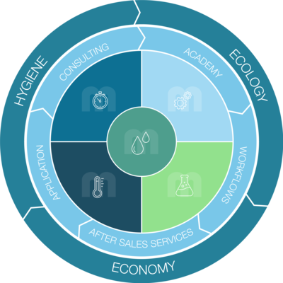 The MEIKO Clean Solution Circle brings in all relevant parameters for the cleaning process and their relationships and dependencies on one another.