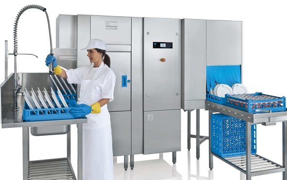 The dishwashing areas in hotels and restaurants are usually small and every inch is used. It will be a bonus for you if the dishwasher carries out both cleaning crockery and dishes as well as glassware including bottles etc. You can save precious space when you convert your normal dishwasher into a bottle washer. This is the case with the M-iClean U from MEIKO.