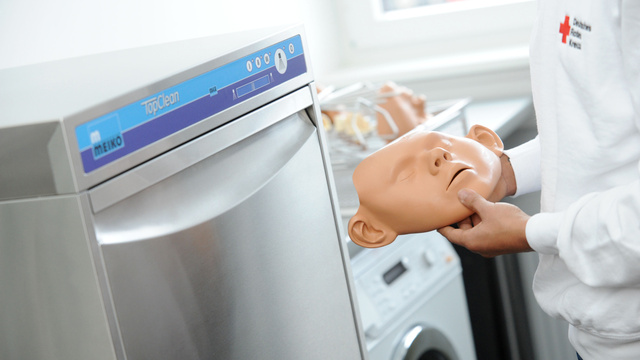 Working by hand is not to be underestimated – but it's not the best option for cleaning respirator masks or regulators. The right machine will clean better, faster and more economically. That's possible with MEIKO.