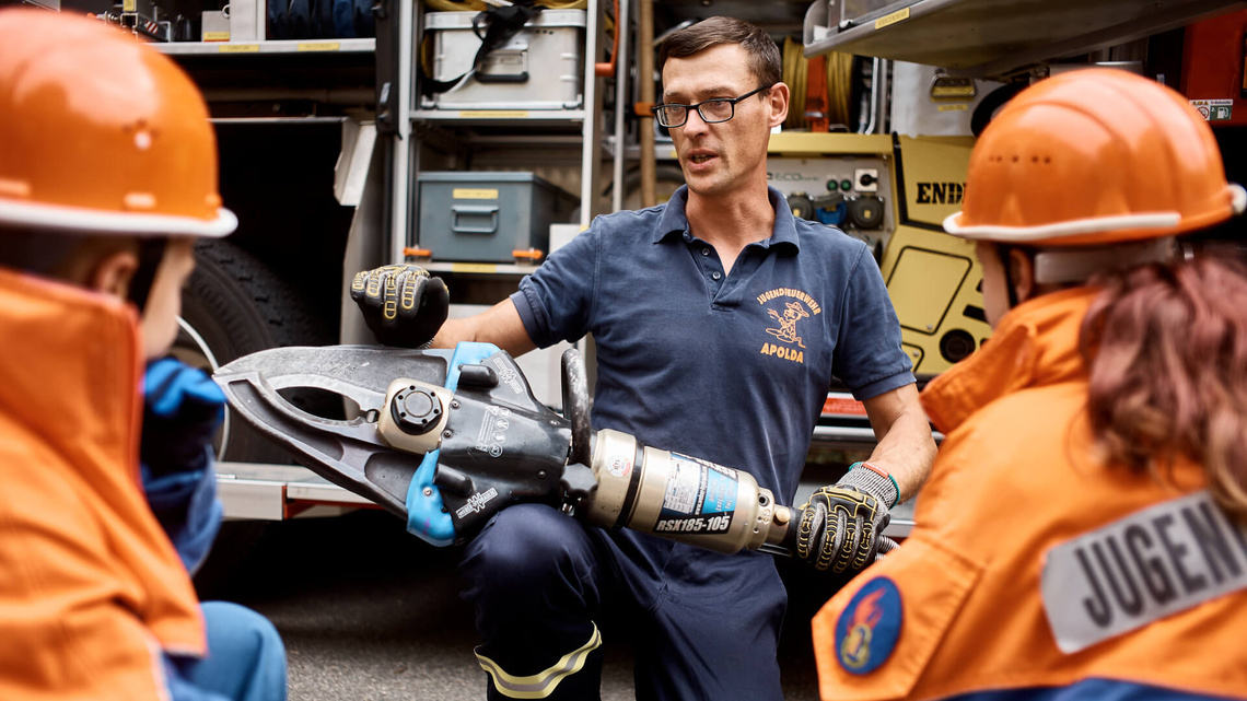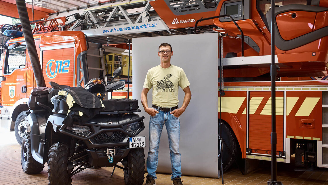 Aiden isn't my biological son. He was 2½ when Monique and I got together. He started calling me ‘daddy’ six months after that. He has been busying around with a miniature hose playing firefighter since he was three. When he turned six and was finally old enough to join the kids troop of the youth fire service, he was so proud of his uniform! Now he's ten and still hugely enjoying all the exercises with the other children. My wife works shifts. Since she joined Apolda voluntary fire service, we go through periods where we see more of each other there than at home! Firefighting and quad biking just appealed to us so much.
