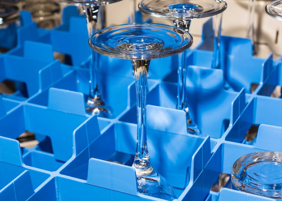 Un vaso o copa de alta calidad se puede lavar unas 1000 veces, afirma Klaus Völkner del fabricante de vasos y copas Stölzle. Pero en algún momento incluso el mejor vaso o copa se debilita: puede producirse corrosión del vidrio. La estructura superficial del vidrio se daña, aparece turbidez o incluso se producen pequeñas fisuras. Para aumentar la vida útil de los vasos y copas, se requiere una interacción óptima de agua, temperatura y detergente durante el lavado. Por esta razón, los proveedores profesionales instalan sus lavavajillas in situ con los clientes. Controlan el agua, ofrecen recomendaciones sobre el detergente y la temperatura y se aseguran de que la máquina ofrezca el mejor resultado de lavado posible. Y esto, a su vez, aumenta la vida útil de los vasos y copas.