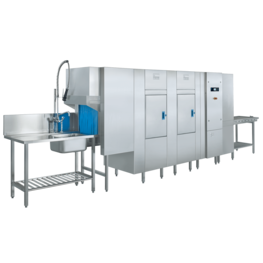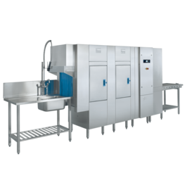 Gracias a un tanque de lavado adicional, el lavavajillas de transporte de cestas vuelve a aumentar la capacidad de lavado. Excelente rendimiento con un uso óptimo de las superficies. Gracias a la recuperación del calor, el vaho caliente no se libera de forma descontrolada en la sala, sino que se vuelve a conducir al circuito de agua, lo que ahorra energía.