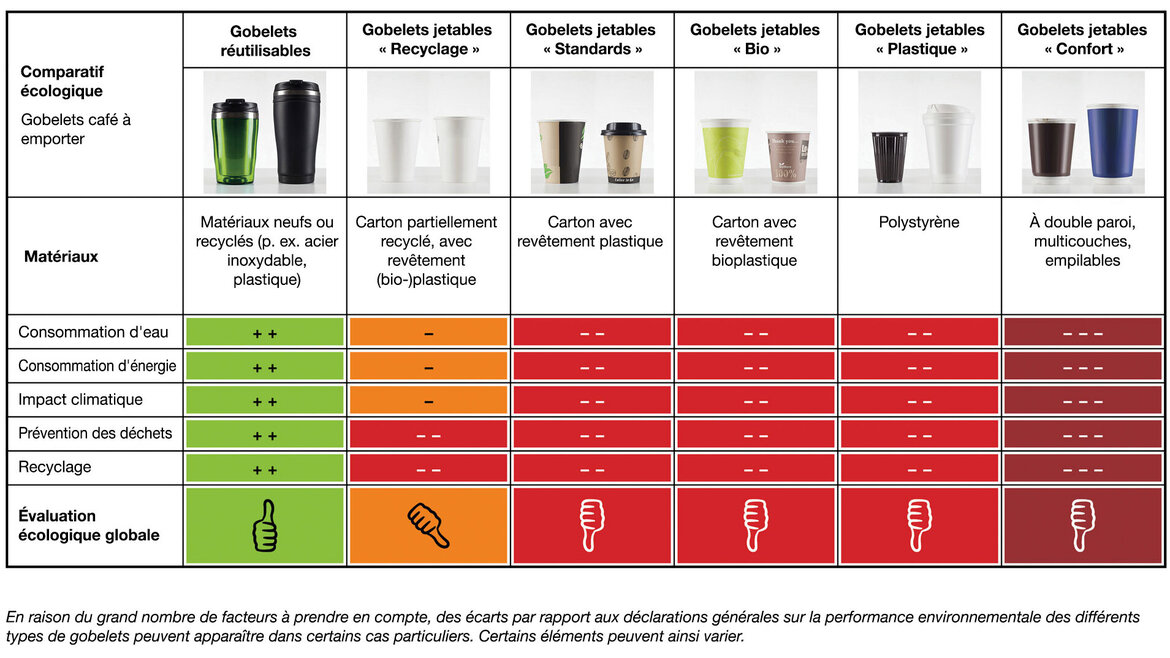 Cette dégustation rapide de café engendre également un besoin de ressources (pour la fabrication des gobelets) de 1,5 milliard de litres d'eau et de 43 000 arbres (64 000 tonnes de bois) pour 29 000 tonnes de papier - en un an. Rien que dans la capitale Berlin, 170 millions de gobelets jetables sont utilisés chaque année. L'énergie nécessaire à leur production, pourrait alimenter 6 100 foyers en électricité pendant environ un an et près de 87 millions de litres d'eau pourrait être économisés.