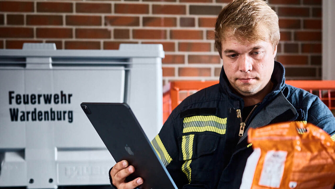 Depuis 2018, nous utilisons des codes de couleur. Quand des camarades rentrent d'intervention, deux autres vêtus de combinaisons jetables et équipés de masques les aident à retirer leur ARI. Les appareils de protection respiratoire non contaminés sont mis dans des sacs verts. Les équipements portés lors d'interventions standards, telles que des feux de poubelle et des incendies de charpente ou d'appartement, sont déposés dans des sacs jaunes. S'il y avait de l'amiante ou d'autres matières dangereuses sur le lieu d'intervention, tout est emballé dans des sacs rouges. En cas d'incendies particulièrement graves à forte teneur en substances toxiques, nous faisons appel à une entreprise spécialisée. Les tenues de protection sont emballées hermétiquement puis apportées dans une blanchisserie spécialisée. Les appareils de protection respiratoire sont traités à la centrale technique des pompiers de Ganderkesee. Nous sommes actuellement à la recherche d'alternatives pour les combinaisons jetables, qui sont tout sauf écologiques. Il y a toujours des choses à optimiser mais dans l'ensemble, avec notre concept d'hygiène, nous sommes sur la bonne voie.