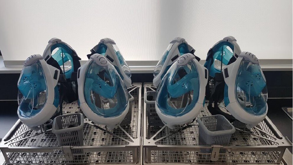 S’agissant de masques de plongée grand public dont l’usage été détourné pour des raisons d’urgence médicale, il a paru pertinent à MEIKO de valider prioritairement l’adaptation de leur savoir-faire avec ses modèles de lave-vaisselle professionnels fréquemment utilisés dans les établissements de santé, rendant ainsi la mise en oeuvre plus aisée et à moindre coût pour les établissements.